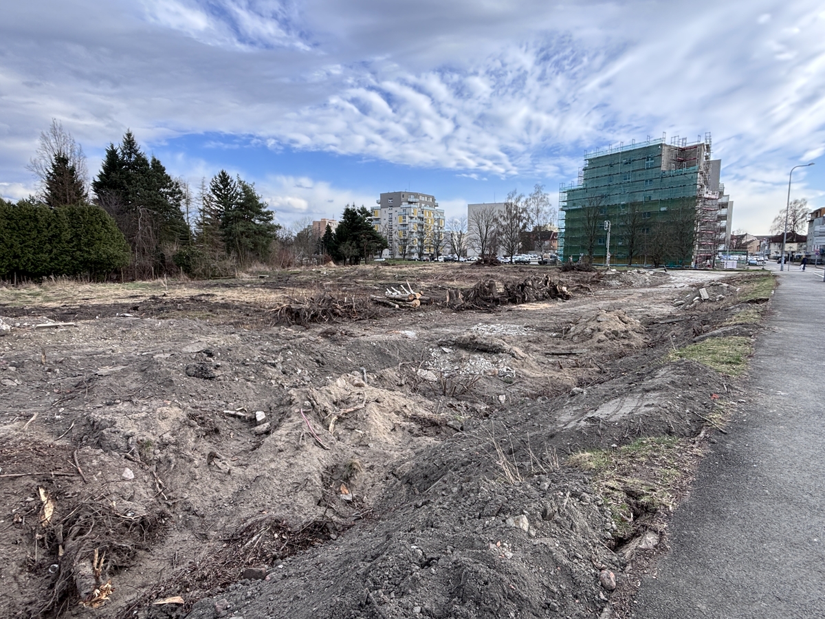 Na pozemek dorazila první technika a proběhlo kácení stromů, které je nezbytnou součástí přípravy staveniště. Aktuálně probíhá úprava a modelace stavební planiny, aby byl terén připraven pro další fáze výstavby.