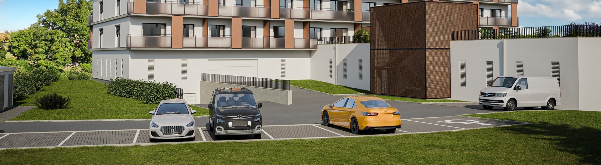 V 1. podzemním podlaží si můžete zakoupit vnitřní parkovací stání k bytu za cenu 399.000,– Kč vč. DPH. Na rozložení parkovacích míst se můžete podívat výše v situačním plánku. O stavu volných a prodaných míst vás budeme aktuálně informovat. Stačí vyplnit formulář s dotazem kdekoli zde na webových stránkách.