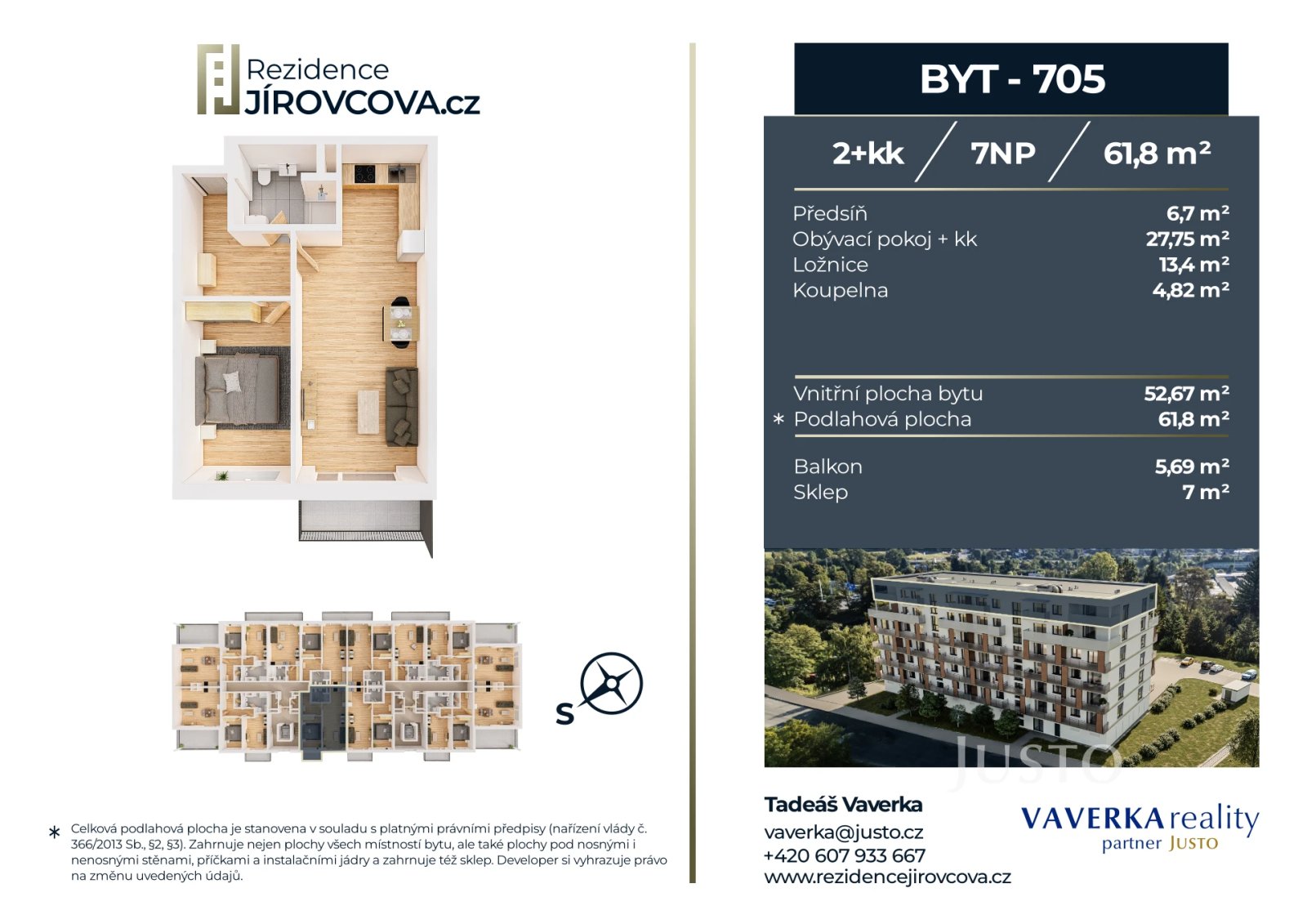 Tento byt číslo 705, o dispozici 2+kk se nachází v 7. nadzemním podlaží.