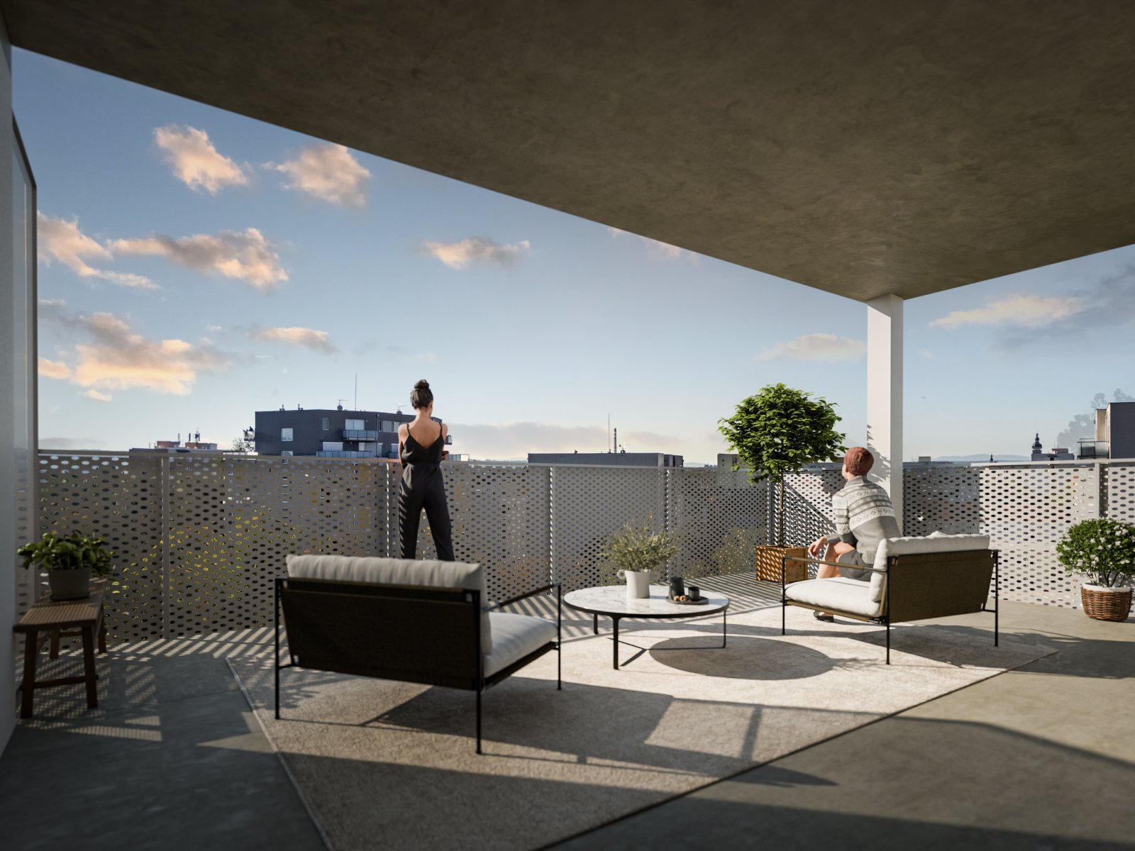 Dvě podlaží jsme vyhradili pro parkovací stání a sklepy, šest horních podlaží slouží pro bydlení. Nabízíme dobře vyřešené dispozice bytů, vysoký standard provedení, dobrou lokalitu, a také něco navíc: komunitní zahradu pro majitele bytů.